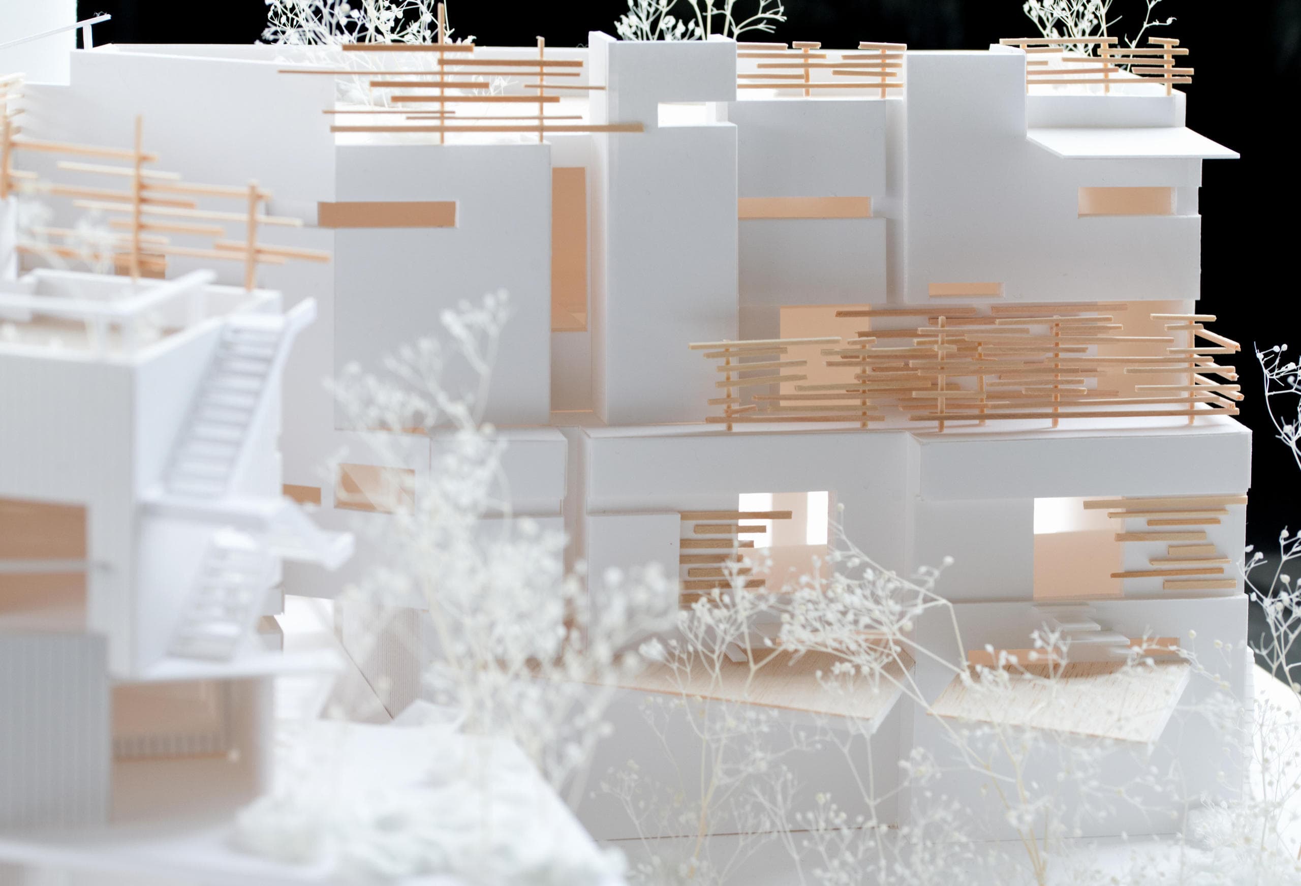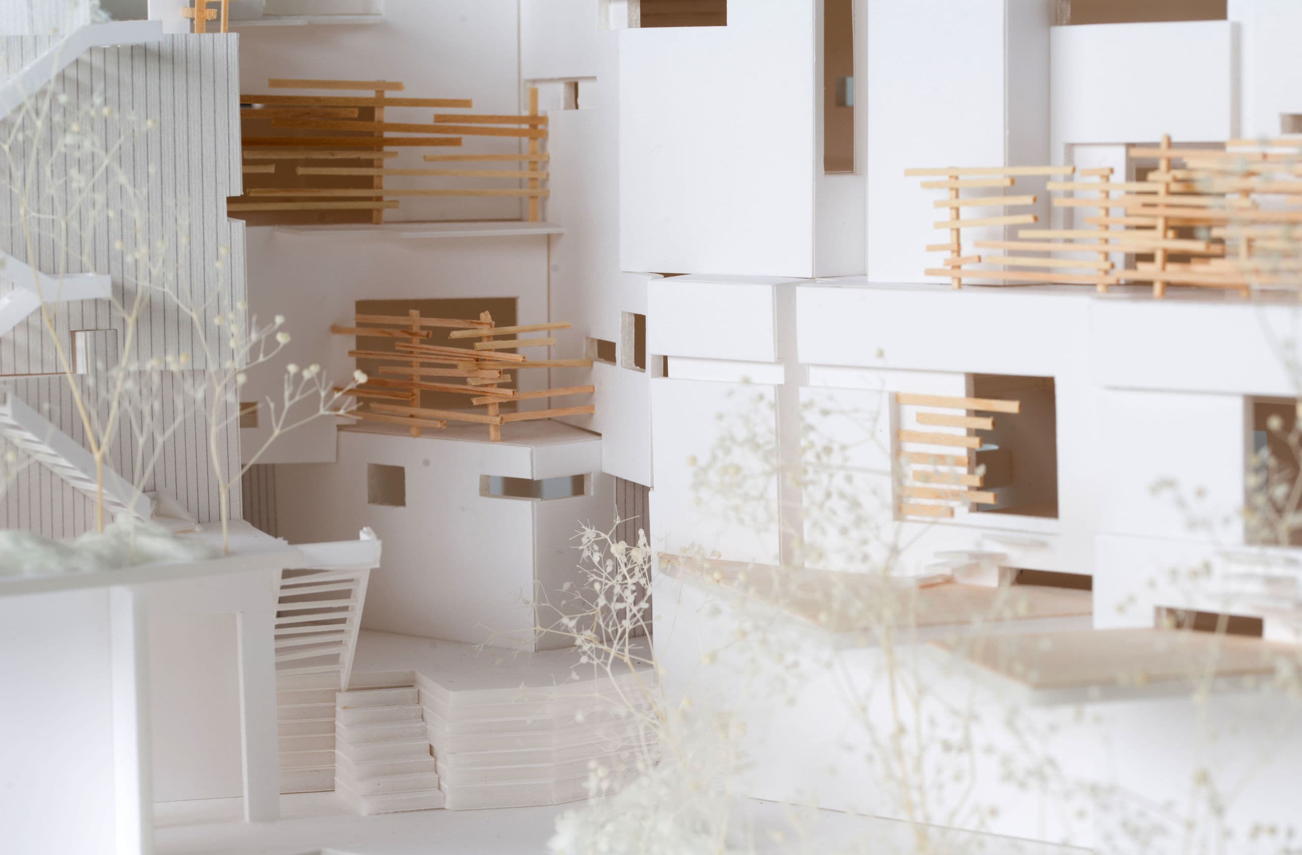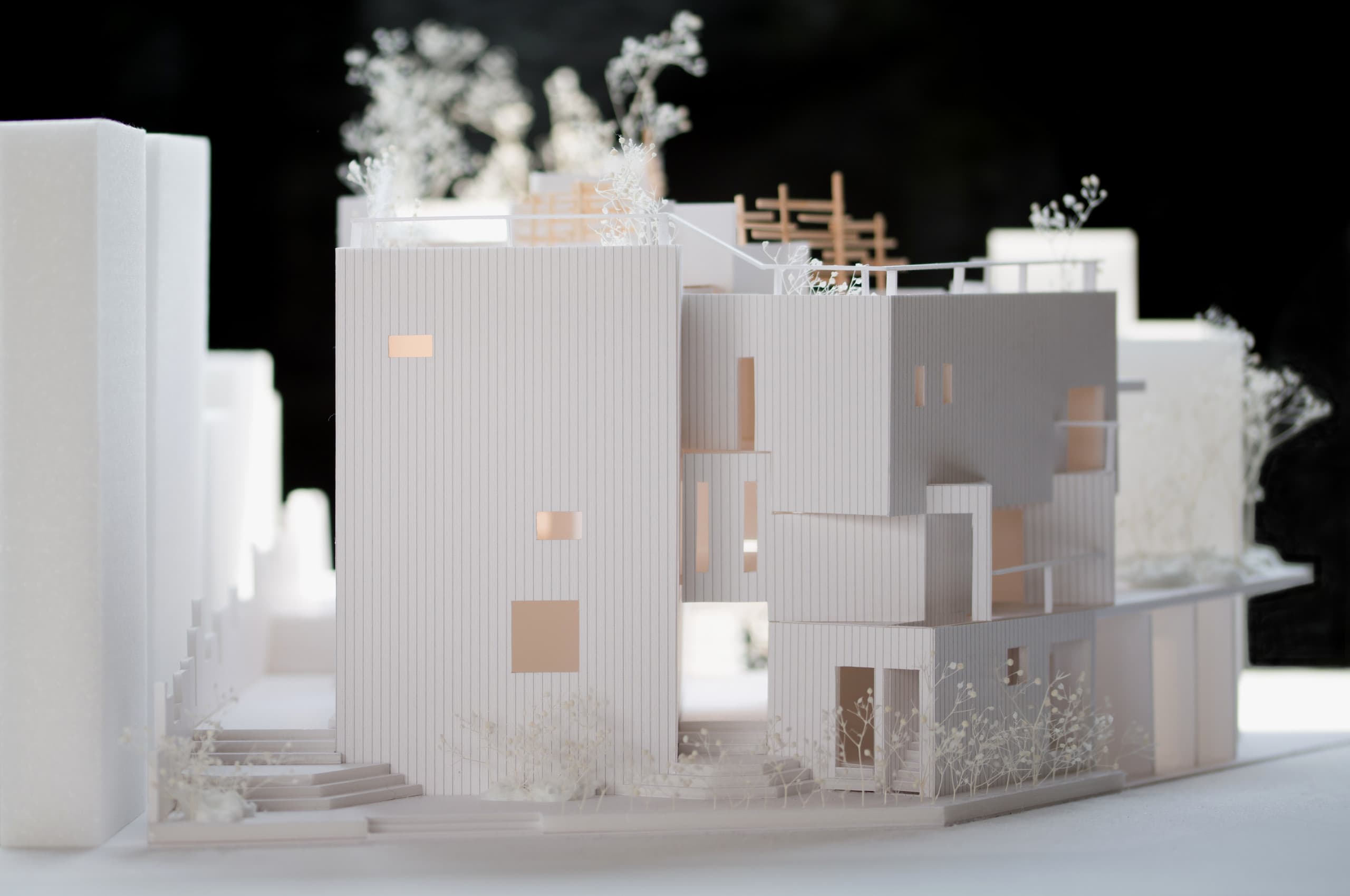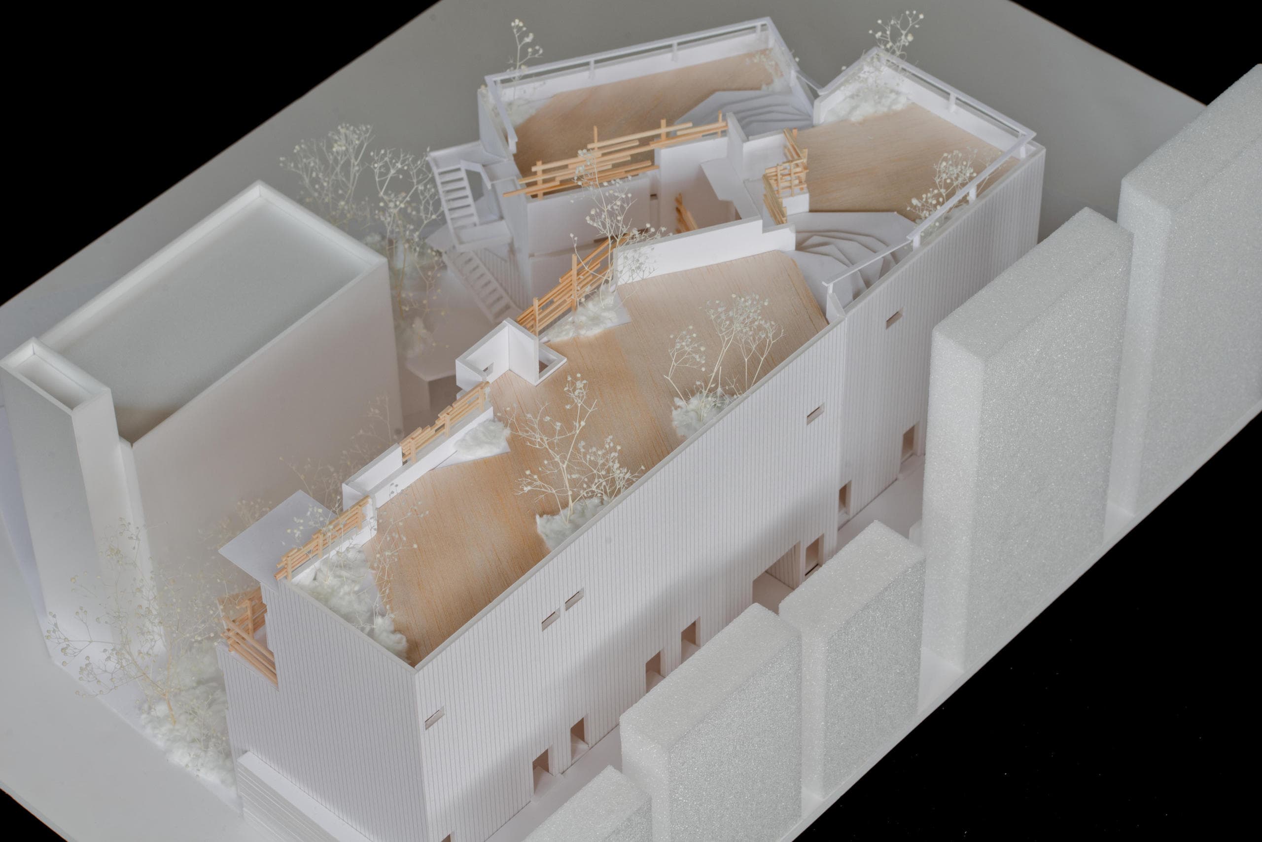 中庭や屋上広場など住人同士のコミュニケーションの場を設けた長屋住宅。