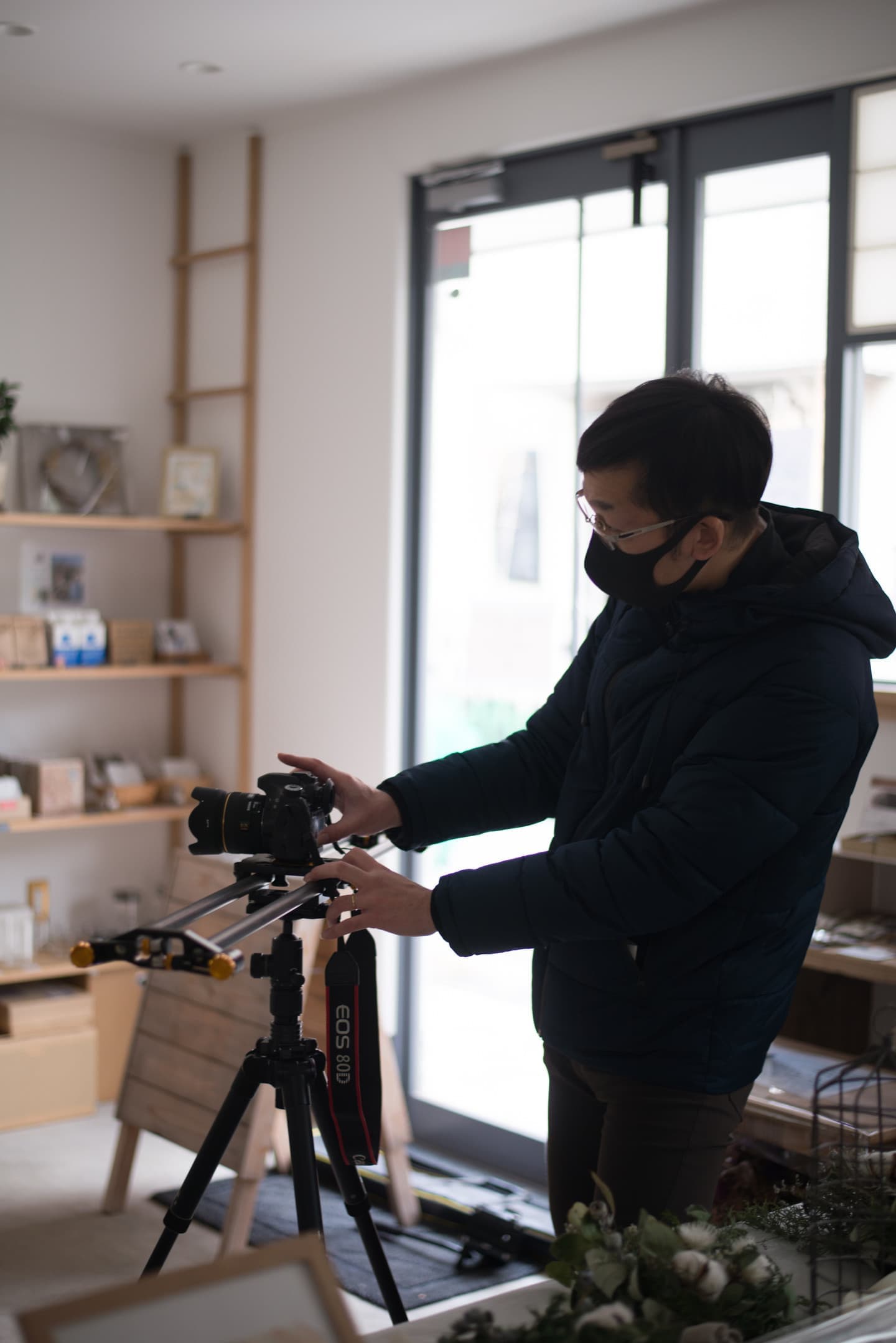 約束した日時に撮影地に行き、機材を使って撮影を行います。